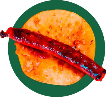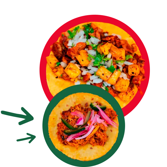 Tortilla de maíz nixtamalizado recién hecha con carne de cerdo aderezada con una salsa a base de una selección de chiles y especias y el famoso toque de dulzor de la piña asada.